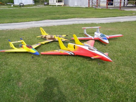 October 2009 Total of 6 jets (one not shown) flew all day with many gallons of Kero burned ! conditions were perfect with a nice wind on the 25 runway. |