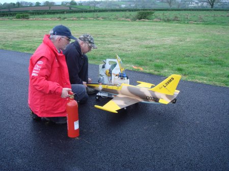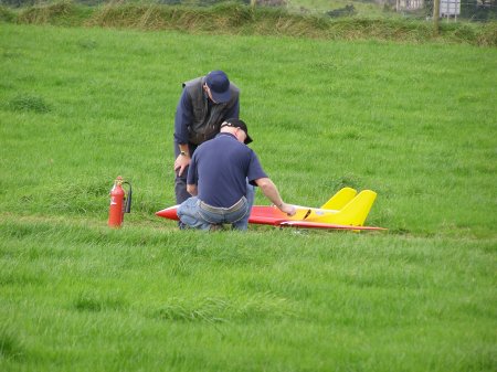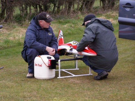 Seamus & Stanley getting the Jetjoe powered AMD Hawk ready for it's first flight. |